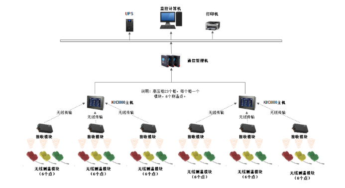 采用遠距離無線射頻技術,結合計算機網絡、光纖通信、數據庫管理等先進技術開發(fā)“配變電設備實時溫度無線監(jiān)測系統(tǒng)”,通過對配變電設備的關鍵部位(特別是電纜兩端頭和電氣設備連接頭等部位)的表面溫度進行連續(xù)不斷地監(jiān)視和統(tǒng)計分析,當溫度升高達到限定溫度或出現溫度非正常變化時,發(fā)出報警信號提醒值班人員緊急處理,可避免或減少故障的發(fā)生,另外提供大量的設備運行接點溫度數據為管理人員進行統(tǒng)計分析提供大量的原始數據。該系統(tǒng)是一項提高供電系統(tǒng)安全性、可靠性,確保企業(yè)生產持續(xù)高效,促進增收節(jié)支的重要技術措施。
