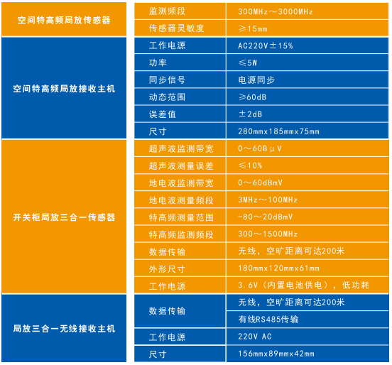 產(chǎn)品由空間特高頻局放傳感器、空間特高頻局放接收主機(jī)、開關(guān)柜局放三合一傳感器、局放三合一無(wú)線接收主機(jī)四部分構(gòu)成。
